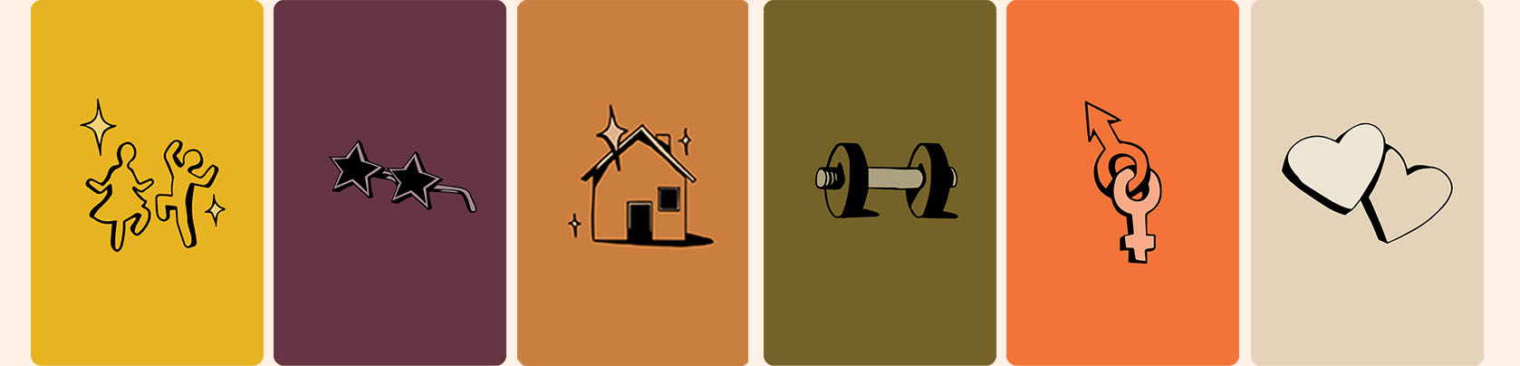 (vylosujte 5 nápověd, ohodnoťte je od 1 do 5 podle toho, co se vašemu partnerovi líbí nejvíce nebo nejméně, a váš partner hádá, jak jste je ohodnotili)